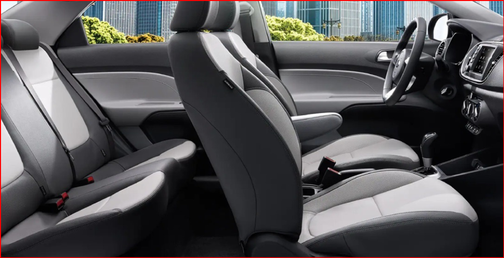 • Seating: Cloth seats with manual adjustment for the front seats.