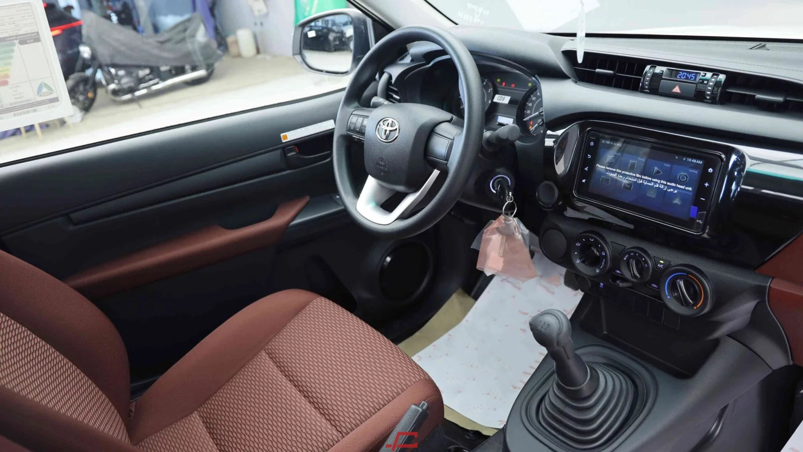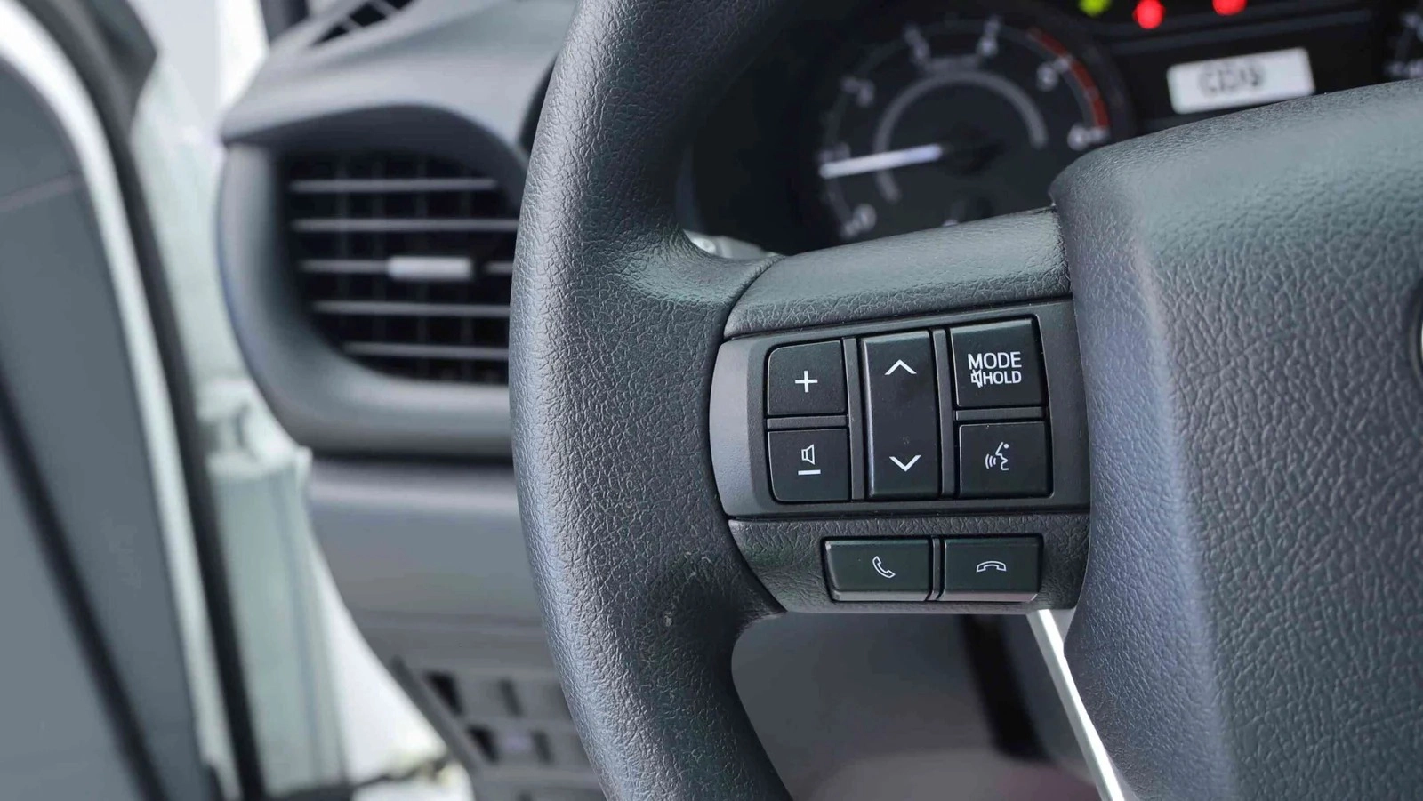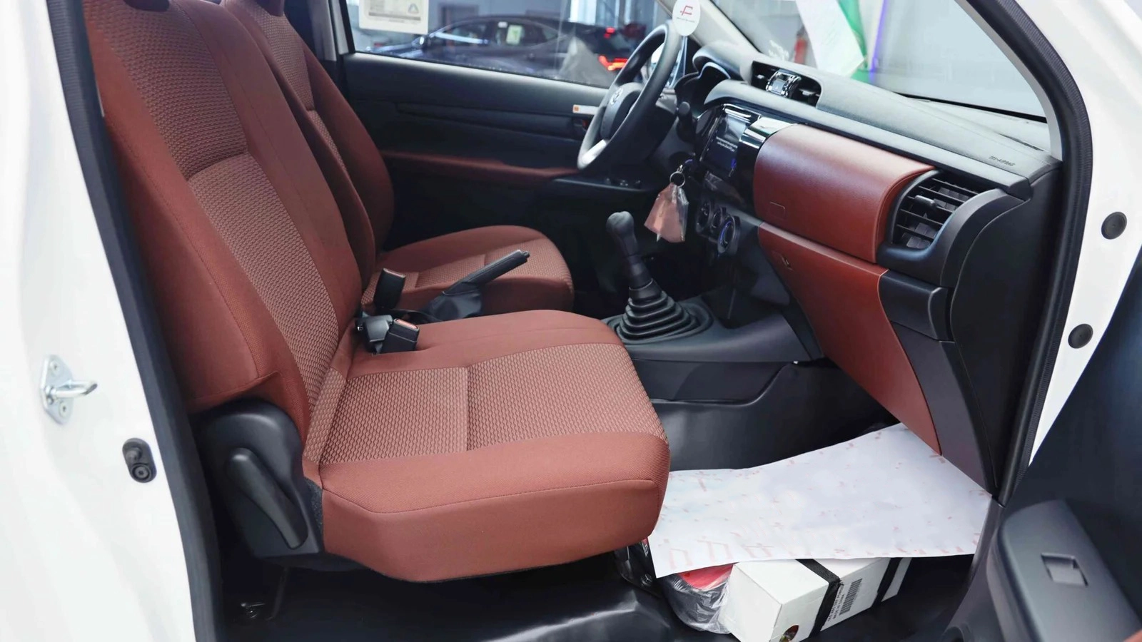 Fabric-upholstered seats with manual adjustment for both the driver and front passenger.