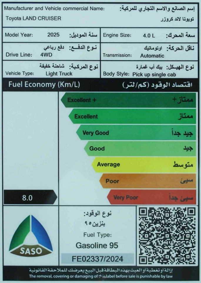 • Fuel Efficiency: ~8 km/l