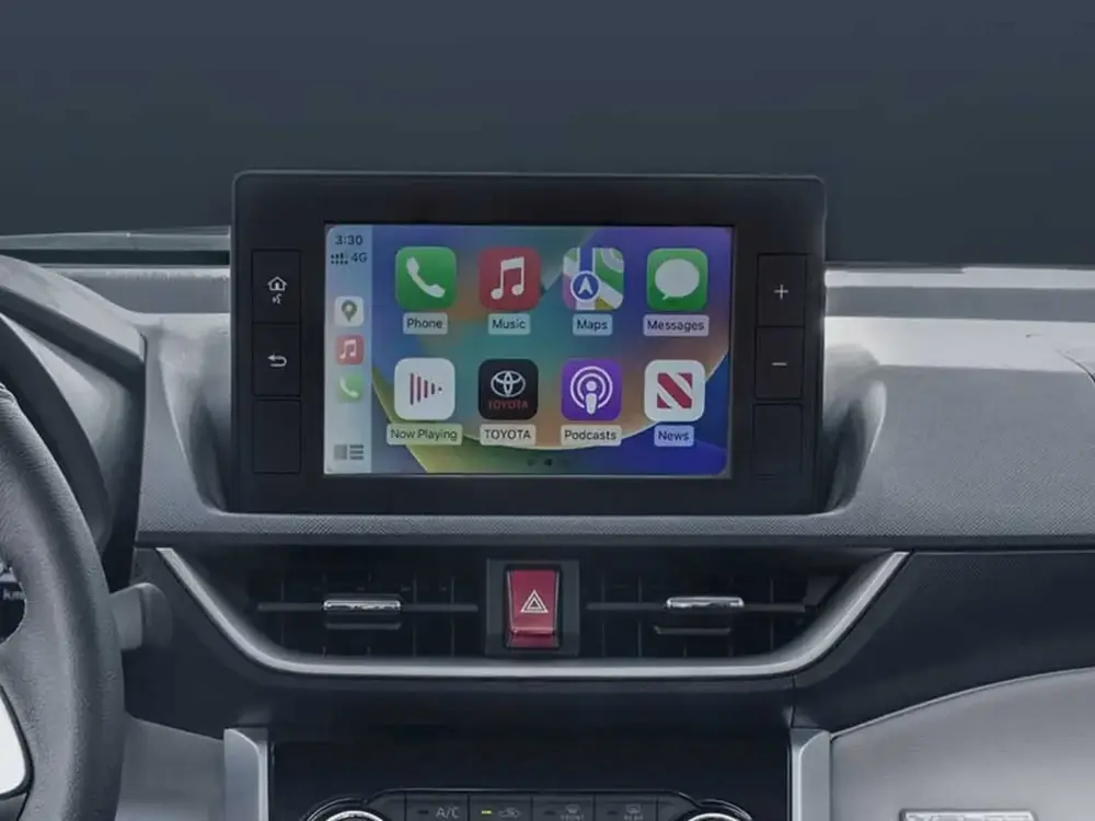 ابل كار بلاي, كاميرا خلفيه, منفذ طاقه, منفذ طاقه, مدخل يو اس بي, بلوتوث, شاحن لاسيلكى, شاشة