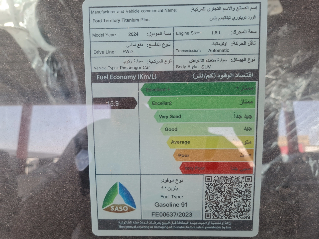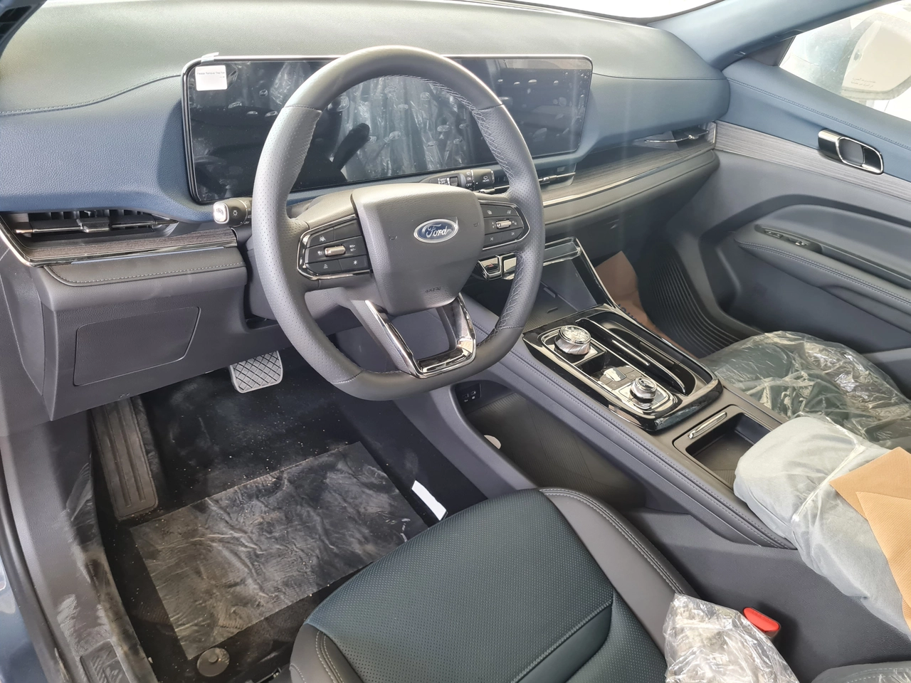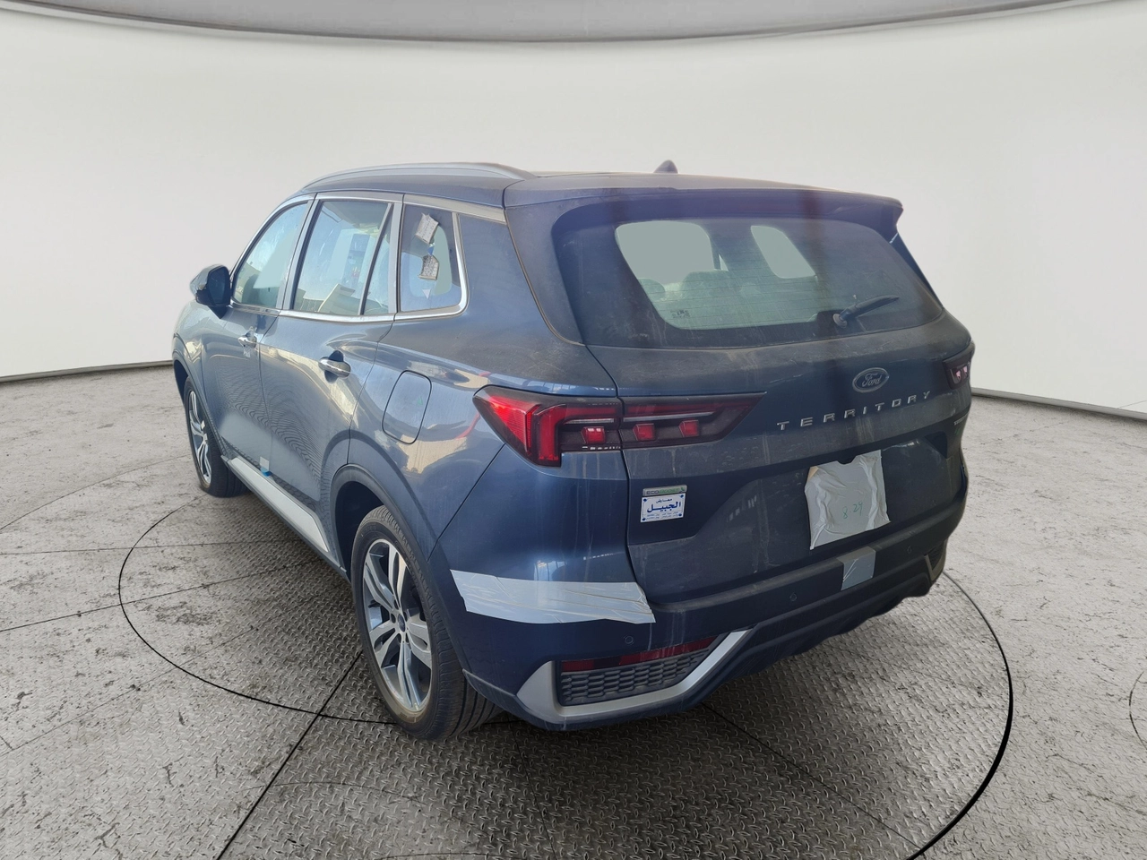 سيارة فورد تريتوري موديل 2024، فئة تيتانيوم، لونها الخارجي أزرق والداخلي أسود، وارد سعودي. مزودة بمحرك 1.8 لتر 4 سلندر تيربو، نوع الوقود بنزين، والقير أوتوماتيك بـ 7 سرعات. تعمل بنظام الدفع الأمامي FWD، مع قدرة حصانية 190 حصان. الحالة جديدة، مع عدد مقاعد يصل إلى 5، وسعة خزان الوقود 60 لتر، وعدد المفاتيح 1.