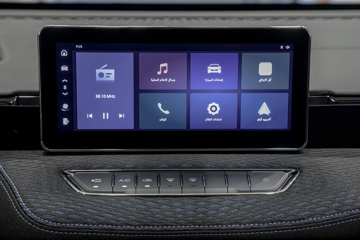 .كاميرا خلفية, .منافذ طاقة, .مدخل USB, .اندرويد أوتو, .ابل كار بلاي, .بلوتوث, .راديو, .شاشة وسائط